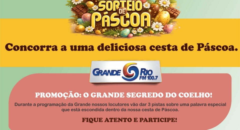 O coelhinho passou por aqui e deixou um mistério no ar…Siga as regras e boa sorte! REGULAMENTO DA PROMOÇÃO “O Grande Segredo do Coelho!” A Rádio Grande Rio FM promove a ação intitulada “O Grande Segredo do Coelho!”, que será realizada por meio do perfil oficial da emissora no Instagram, @granderiofm, observando as condições descritas […]